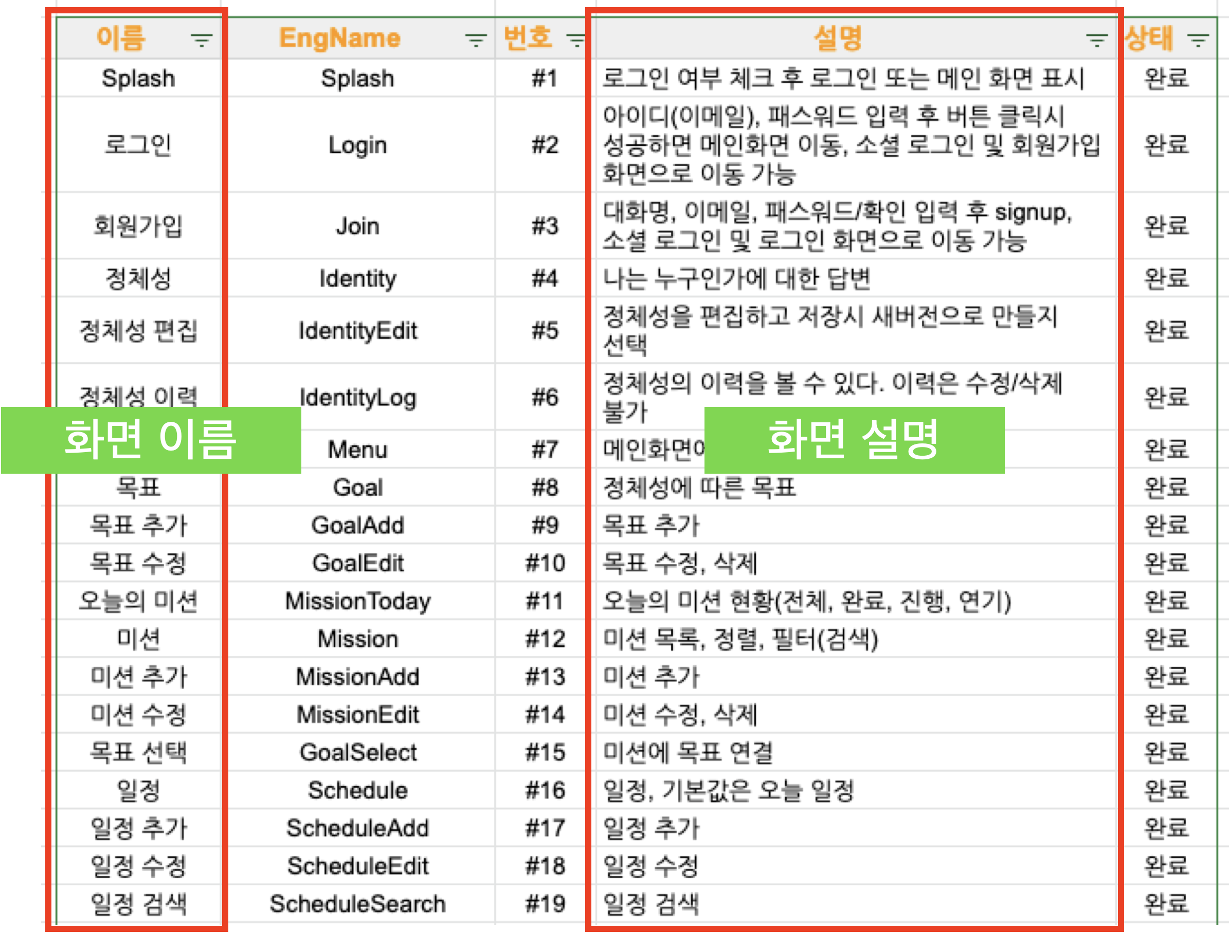 초안 단계는 시나리오 작성시 목록도 자주 변경되므로