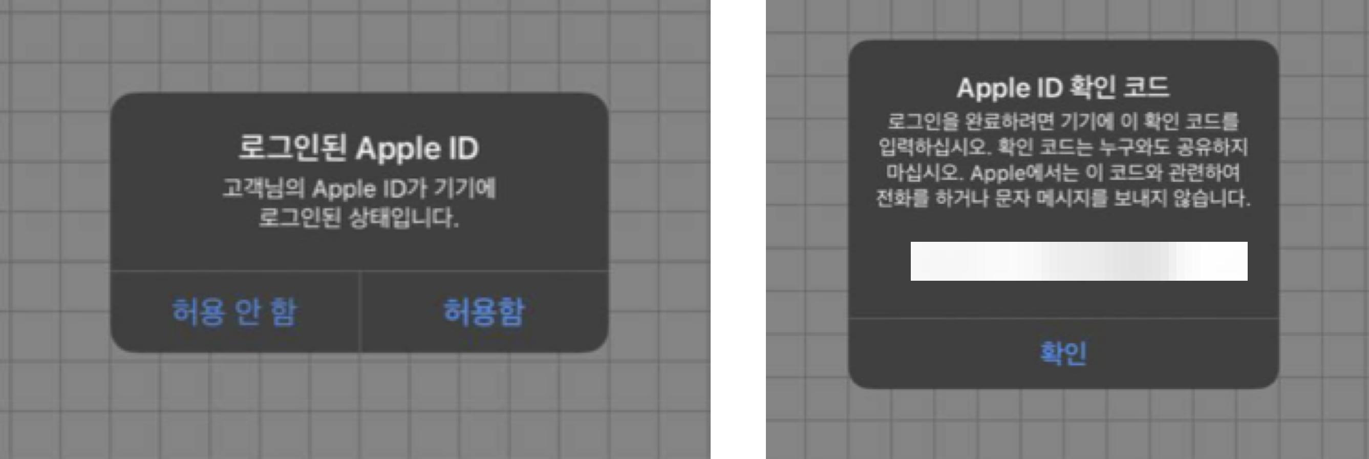인증 확인창에서 허용을 선택하고 확인 코드를 확인한다.