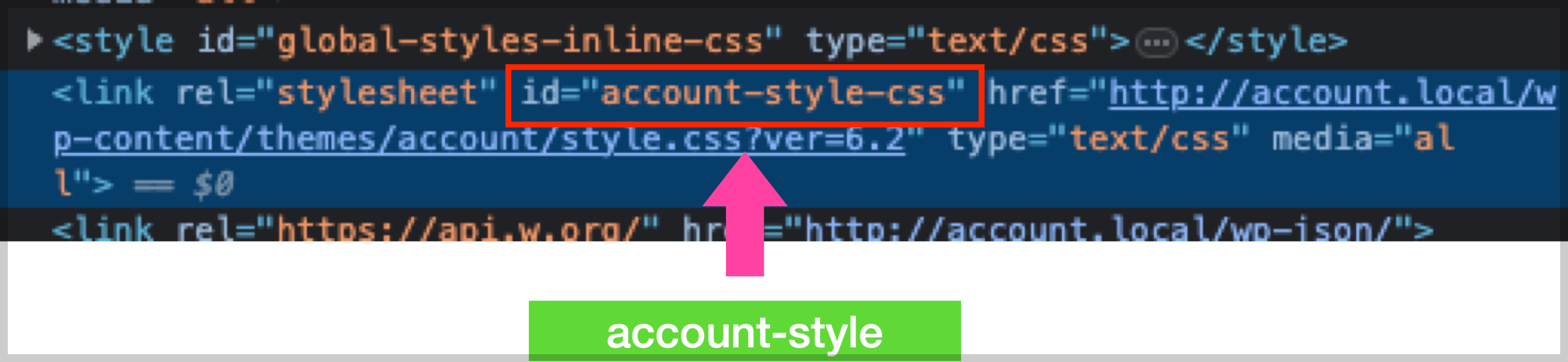 'account-style' : id값에 사용, 접미사(-css) 추가됨, 아래 이미지 참조