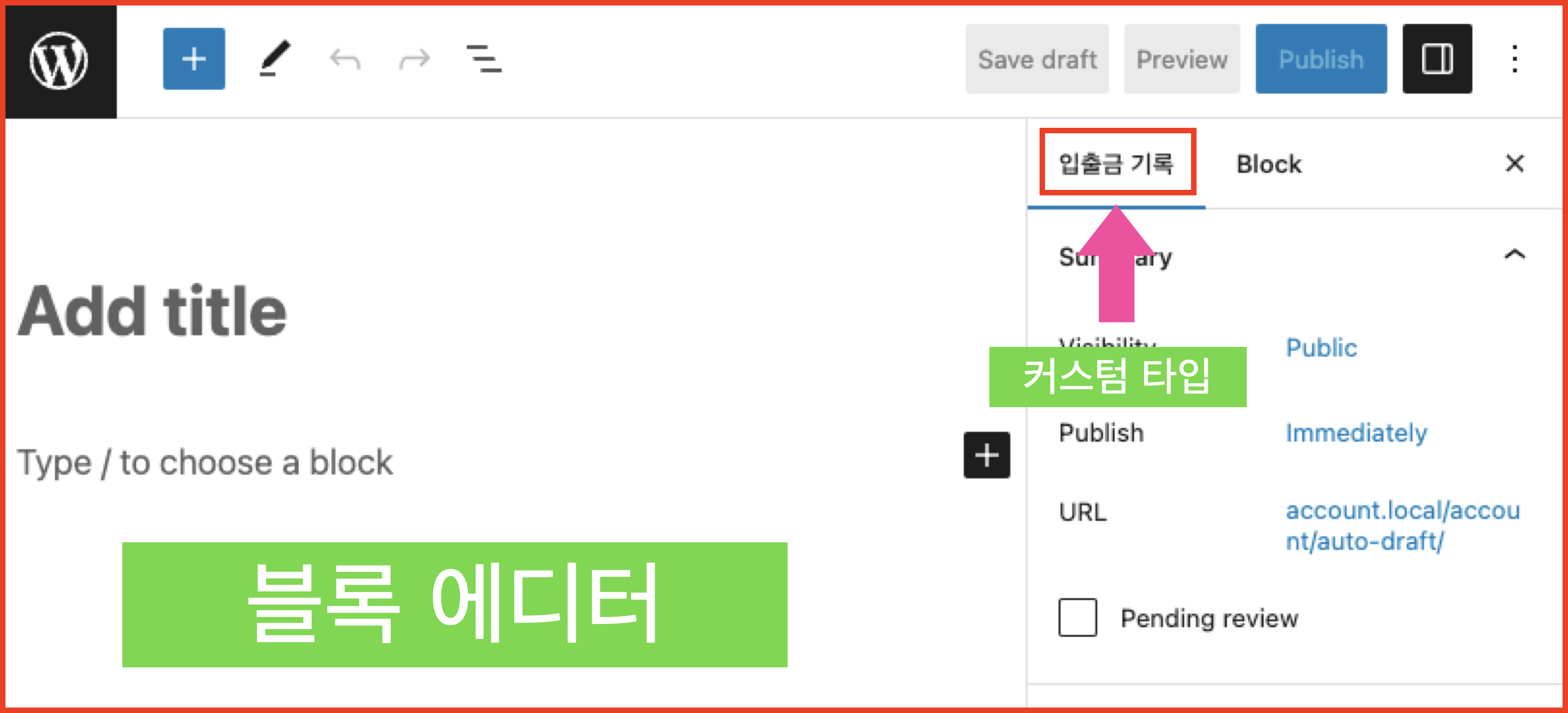 블록 에디터로 설정됩니다.
