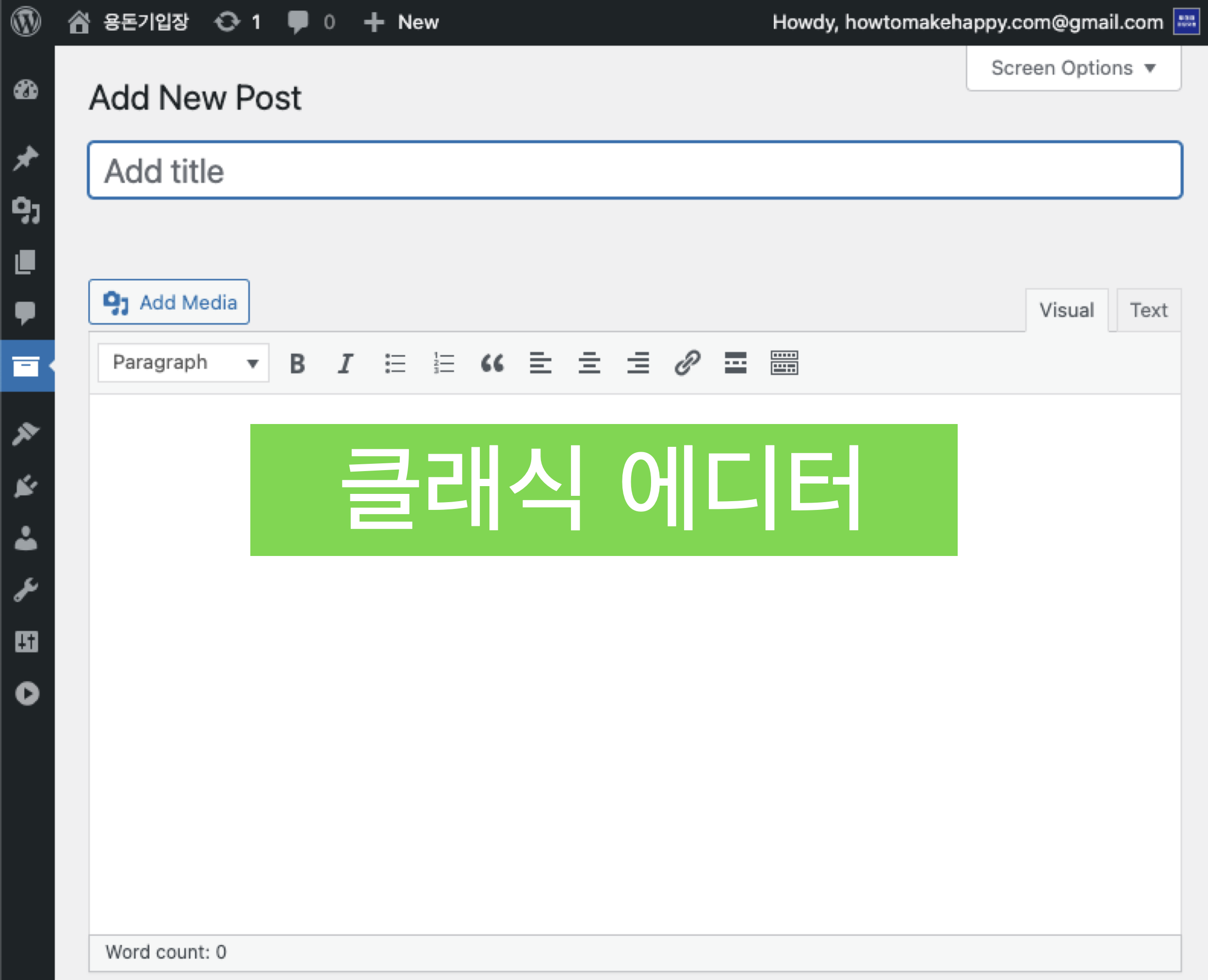 편집기는 기본적으로 클래식 에디터로 지정됩니다.