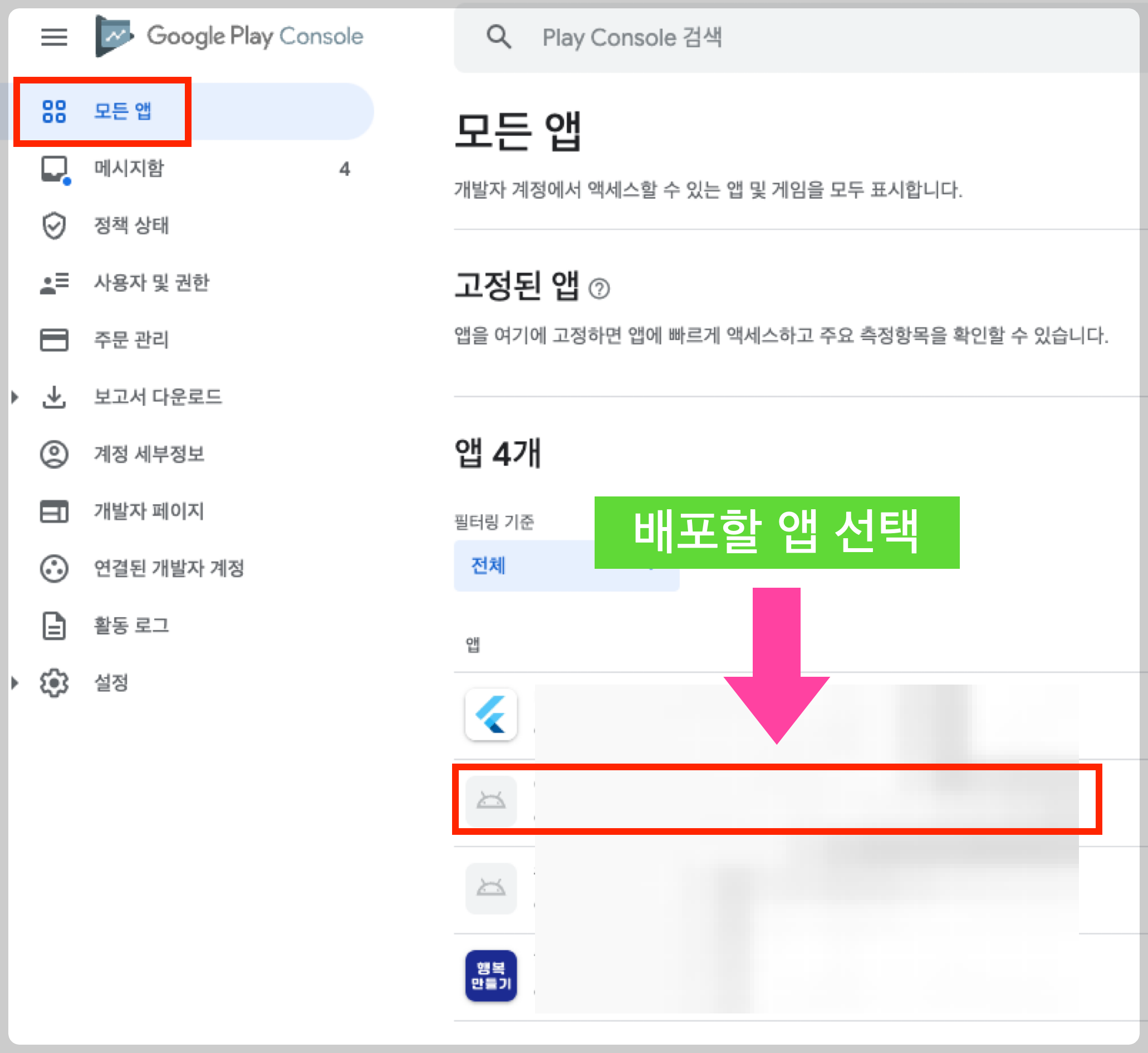 Play Console로 이동 > 계정 선택