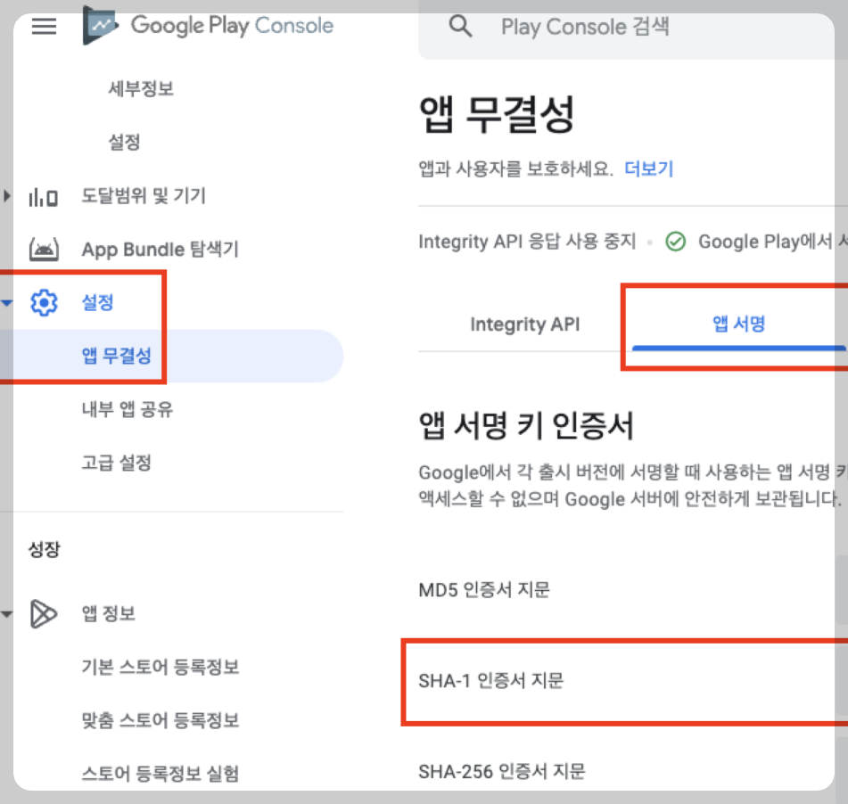 Google SignIn 불가 원인2(Play App 서명)