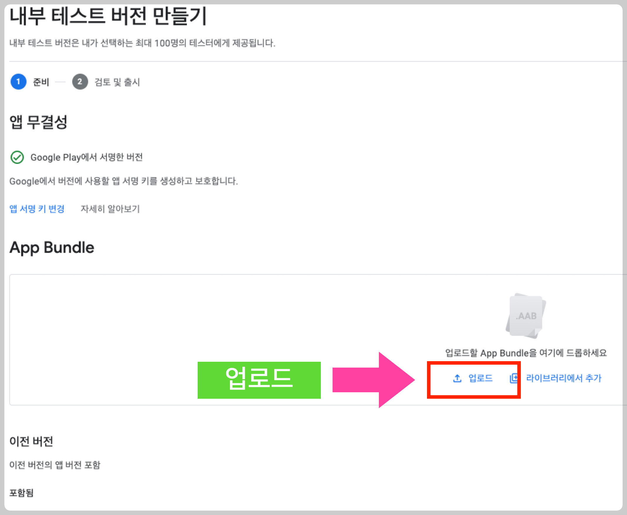 빌드 output은 “[project]/build/app/outputs/bundle/release/app.aab"에 존재