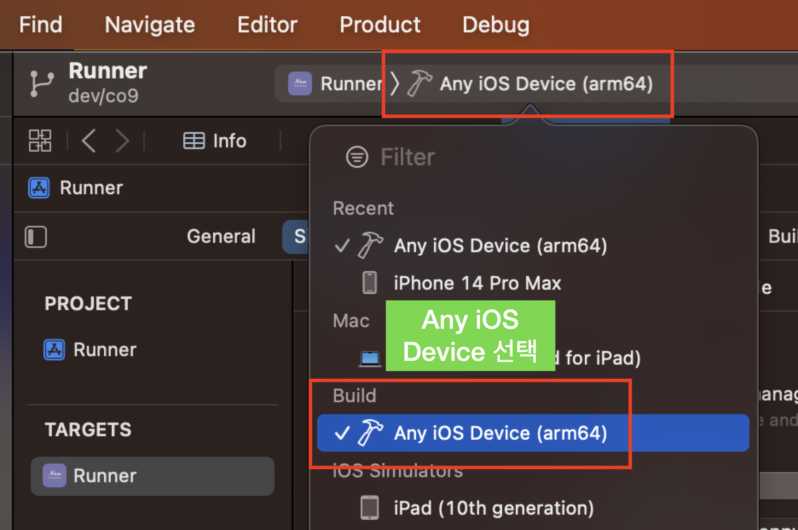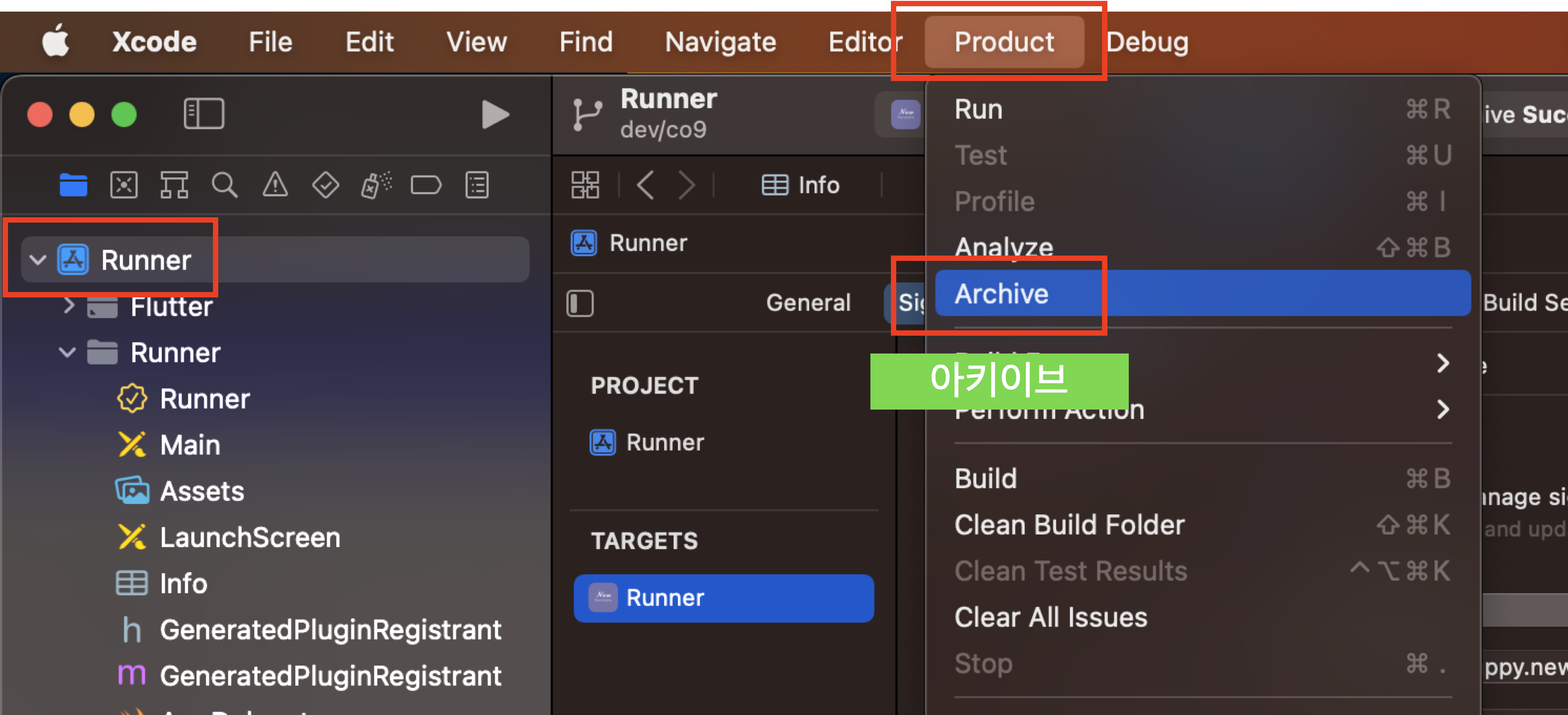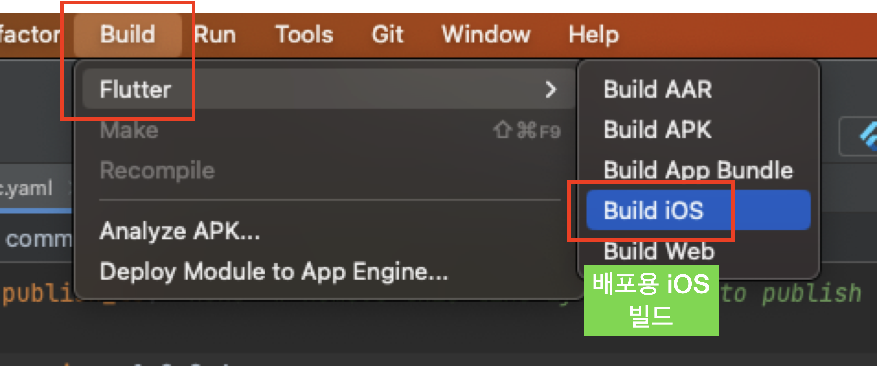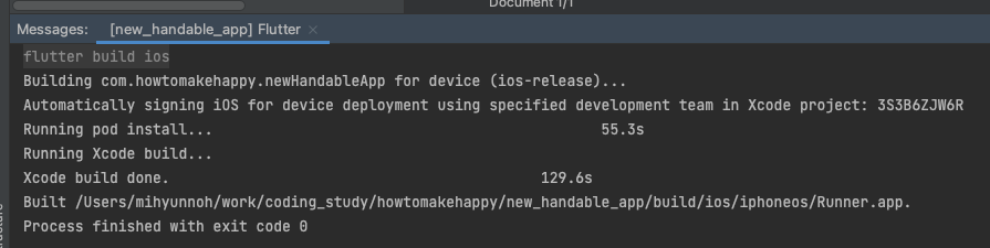 안드로이드 스튜디오에서 iOS용 바이너를 빌드합니다. Build > Flutter > Build iOS