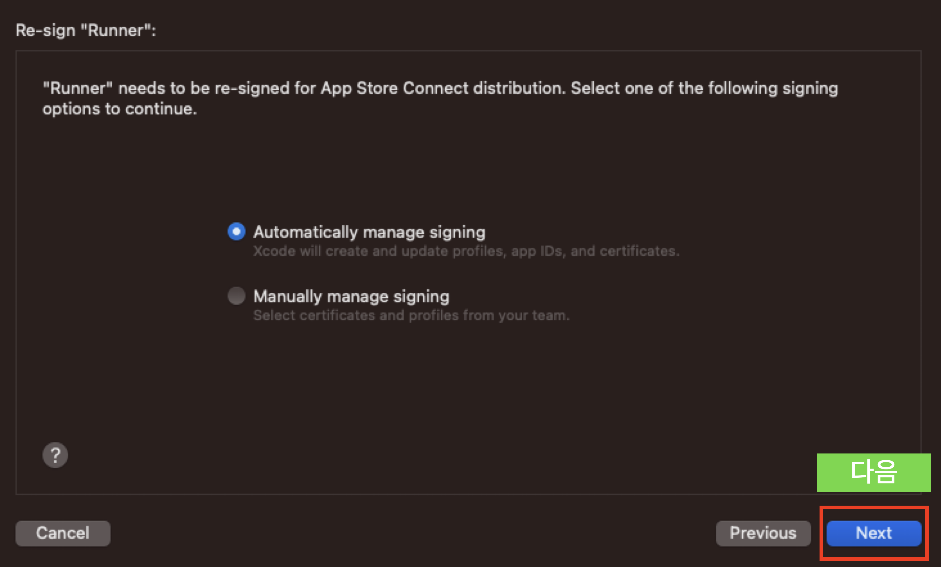 Signing 방법 선택