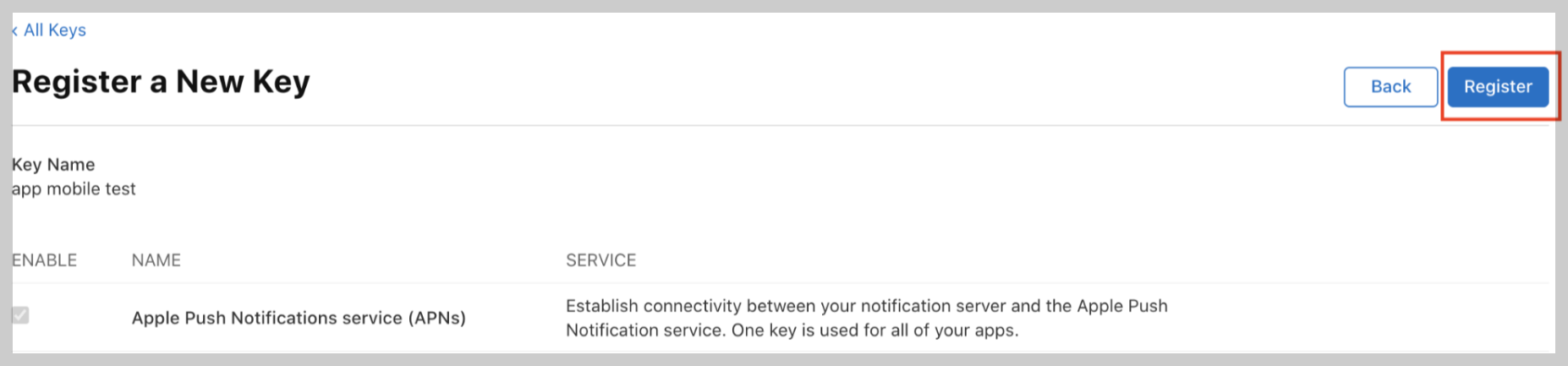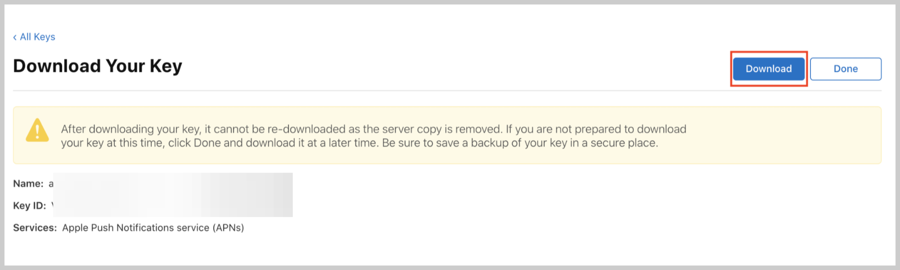 방금 등록한 키를 클릭하여 상세화면으로 이동