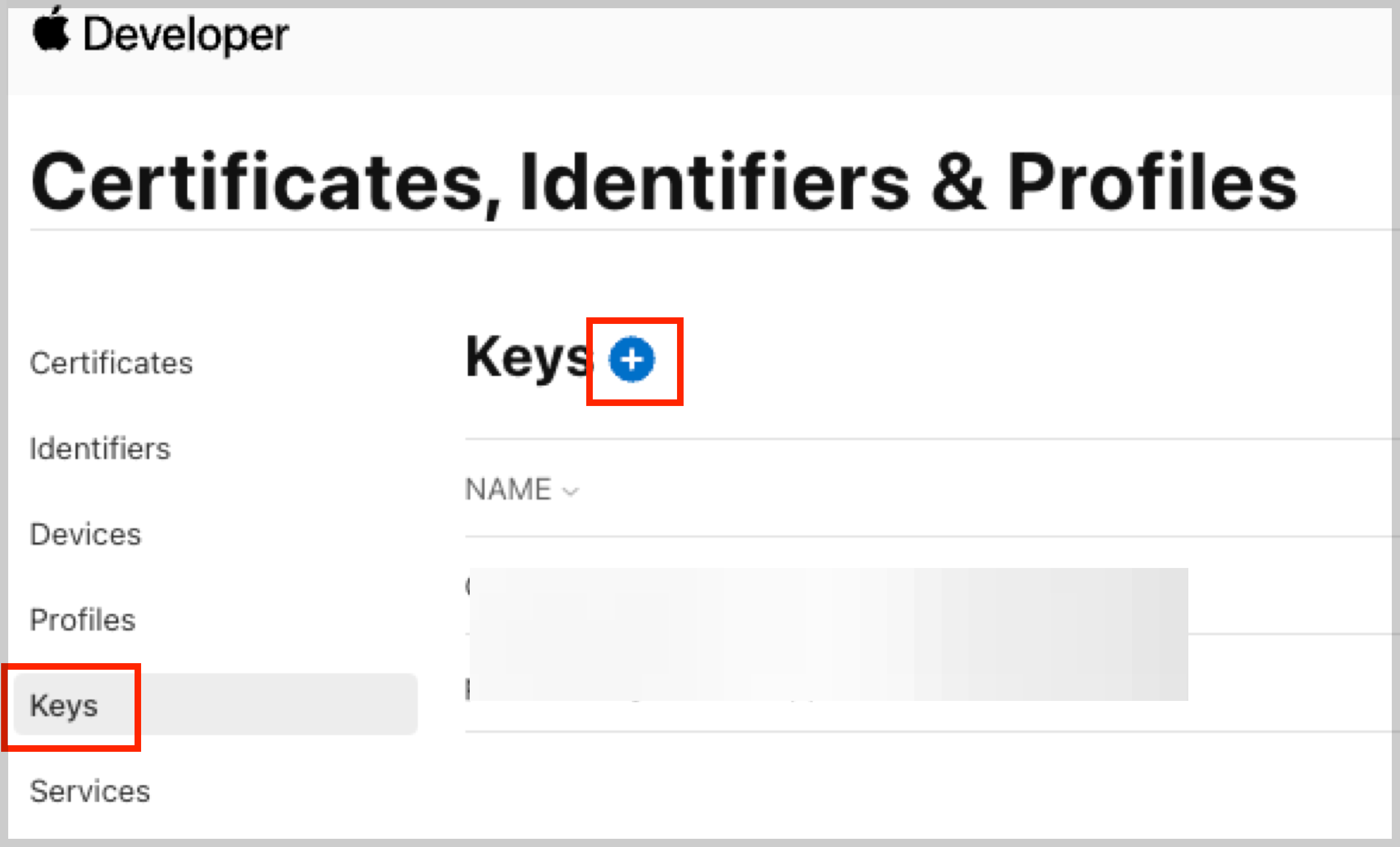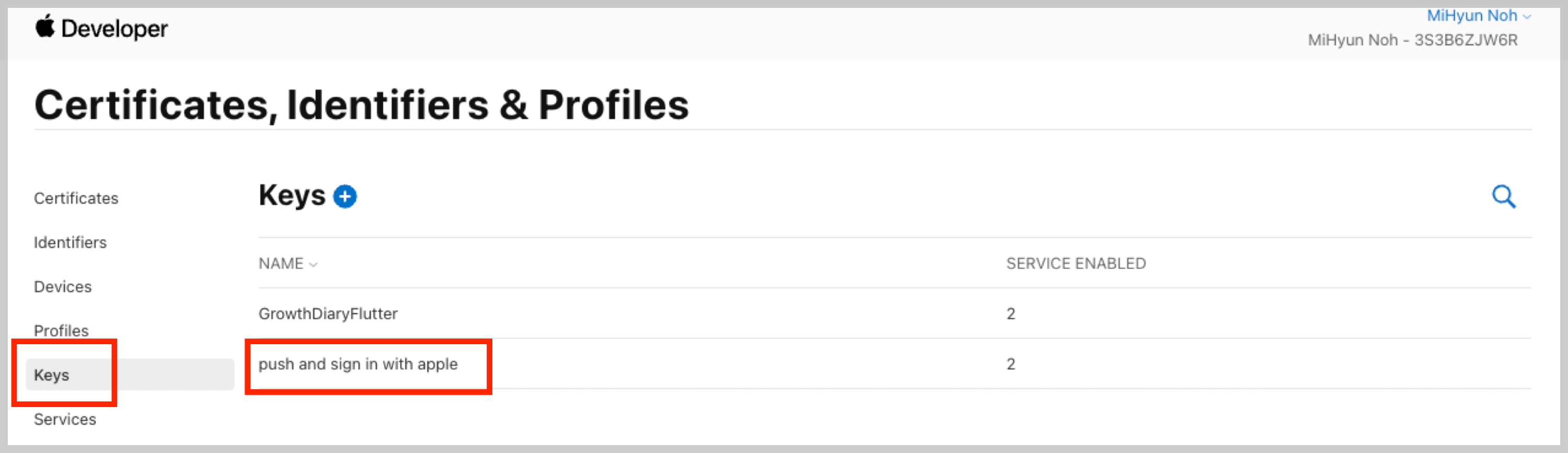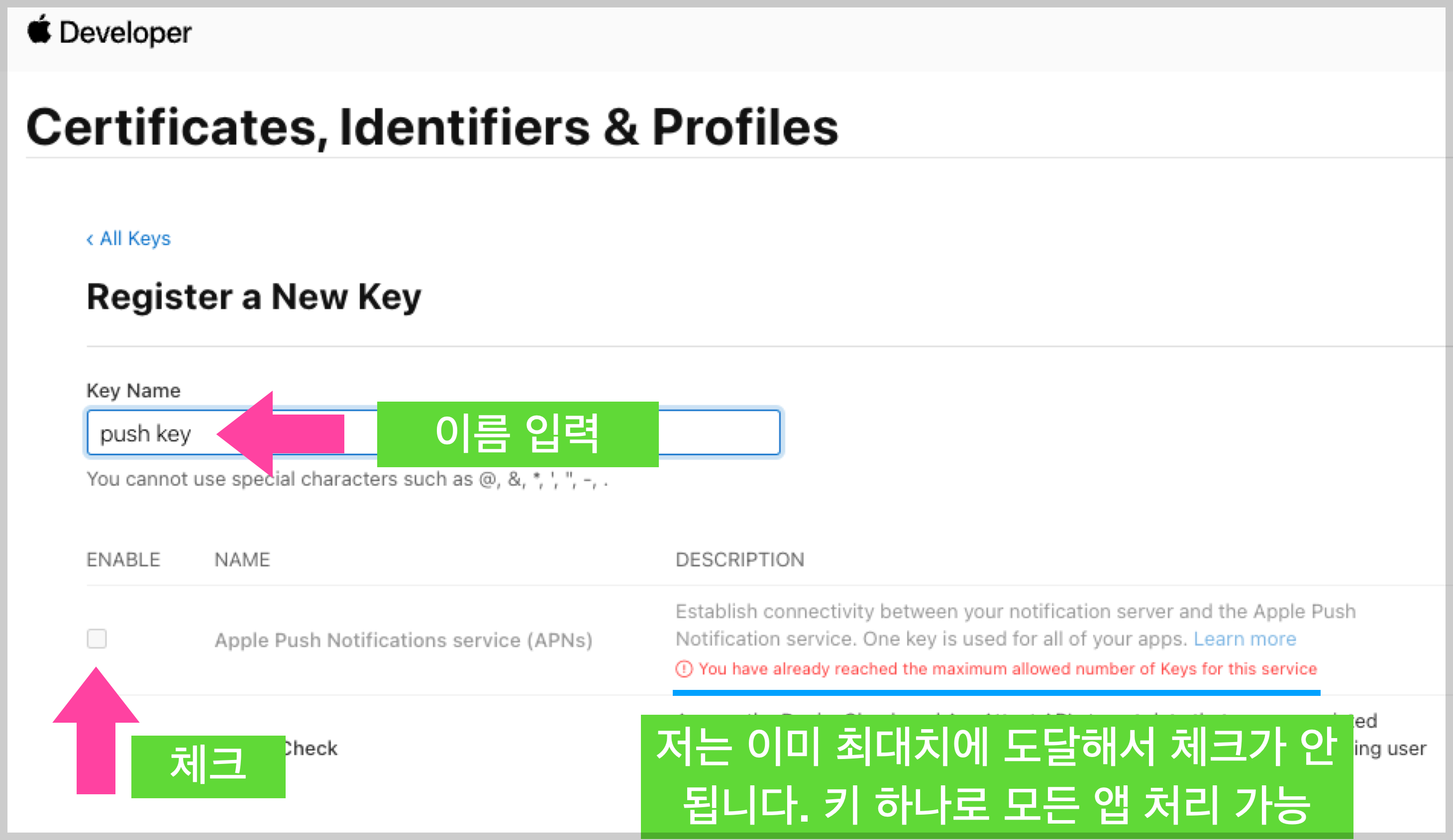 개발자 사이트로 이동한다. 키추가 아이콘 클릭.
