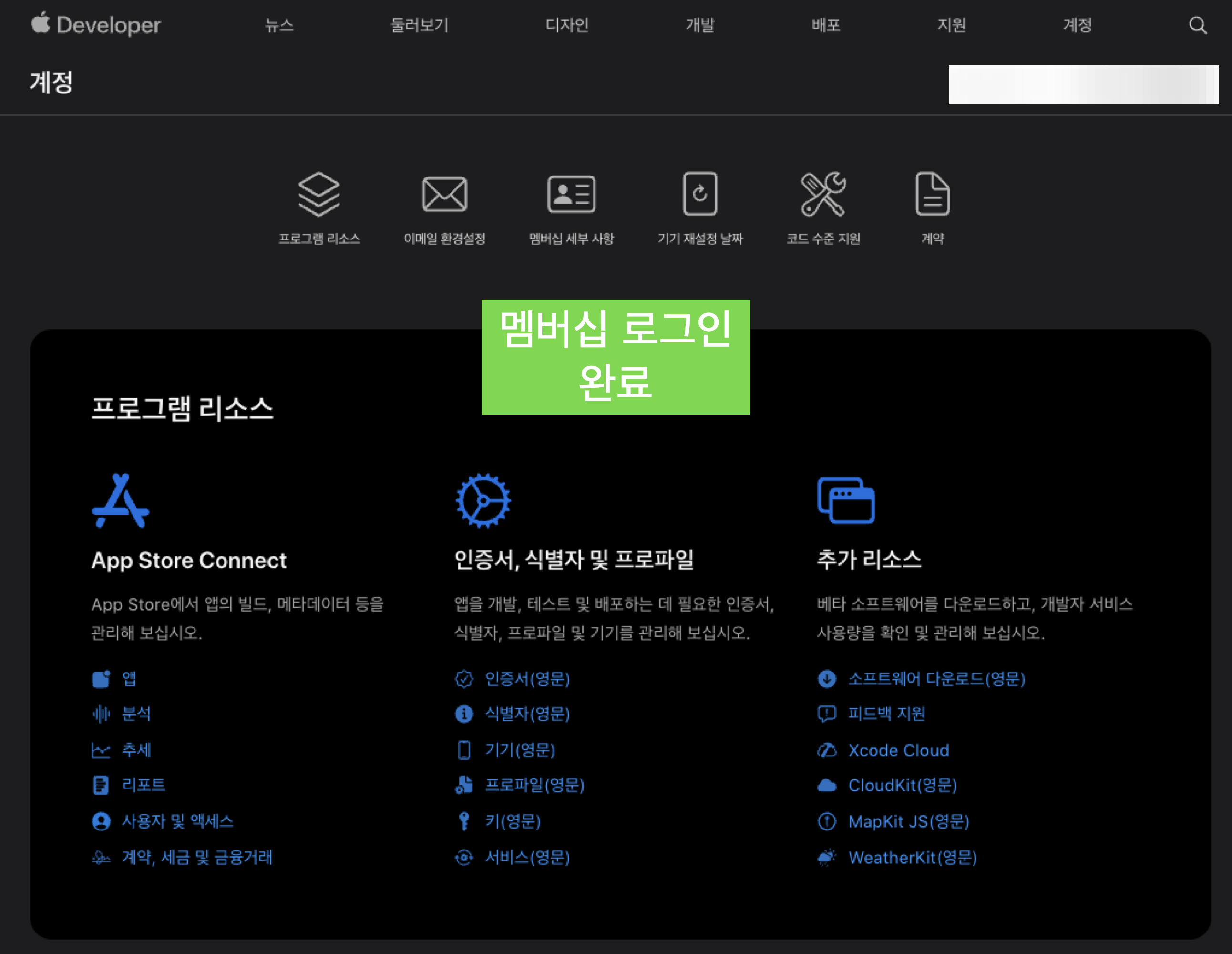 애플 계발자 계정 확인