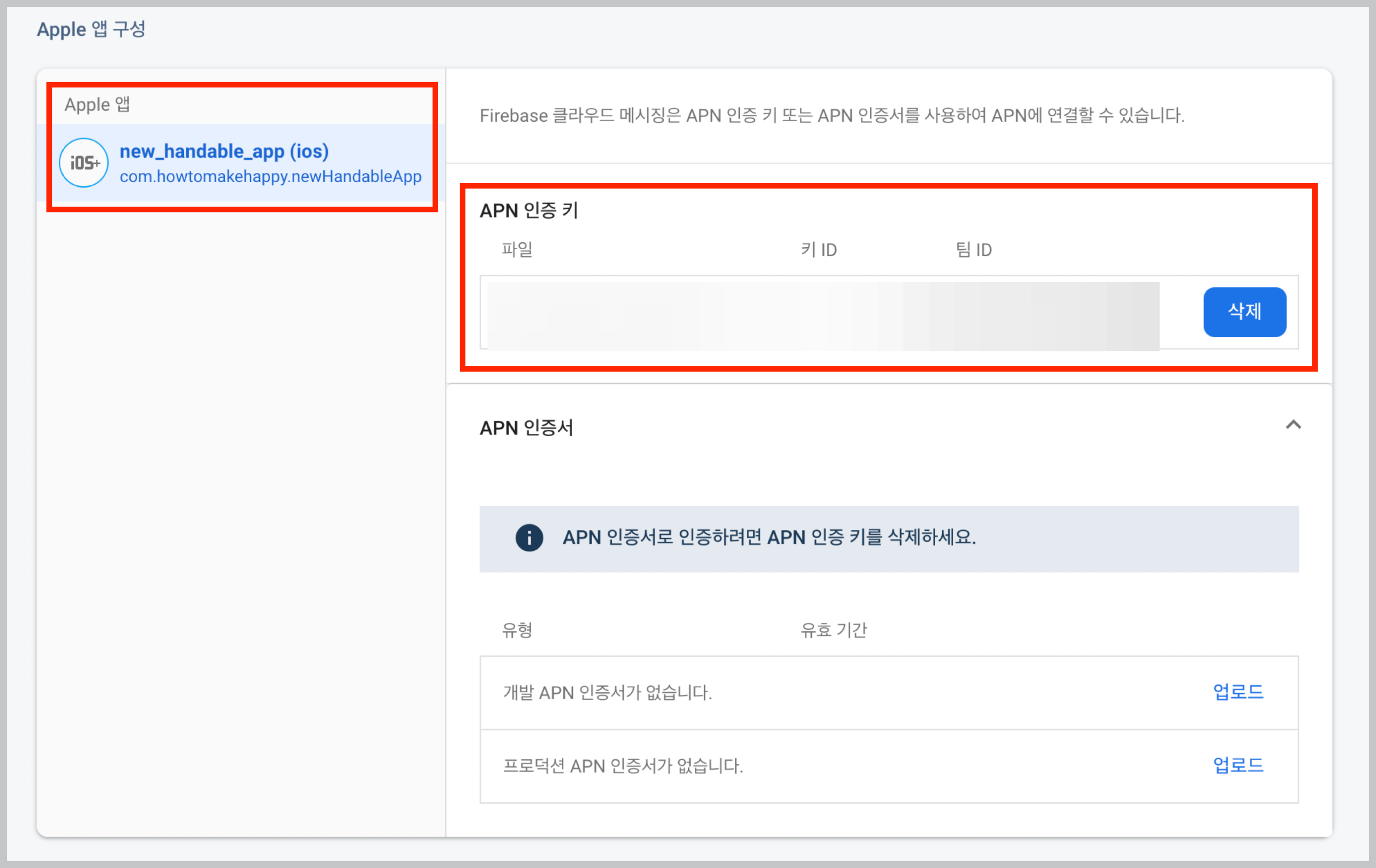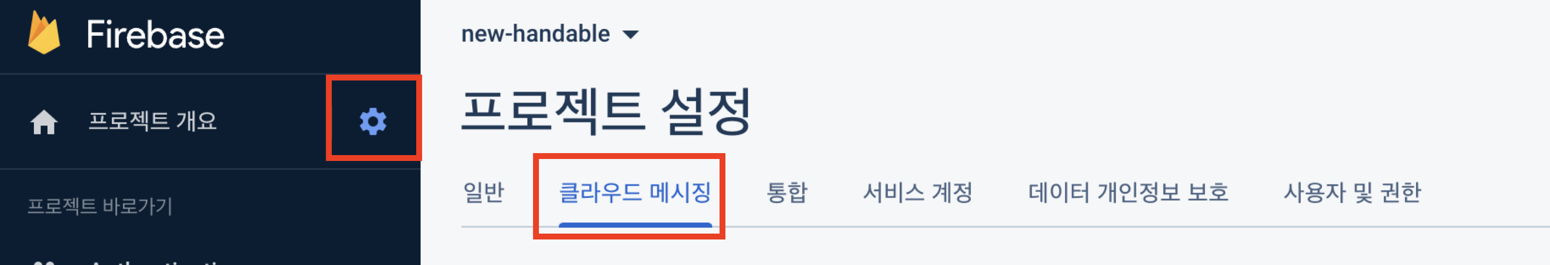파이어베이스 콘솔 > 설정 > 클라우드 메시징