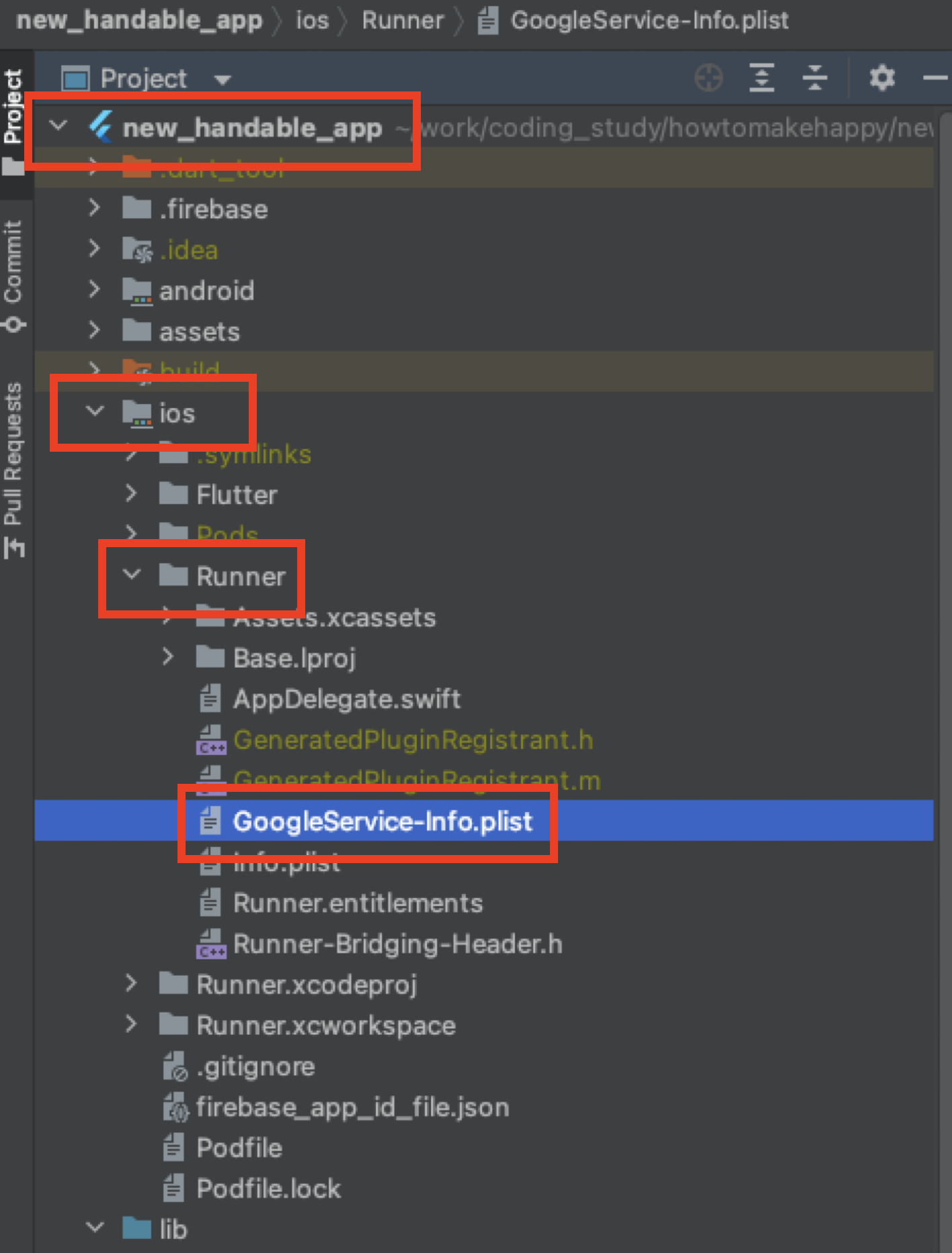 프로젝트 폴더 > ios > Runner > GoogleService-Info.plist